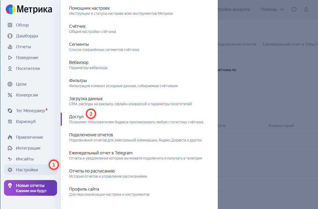 - Редактирование — полный доступ, включая изменение настроек счётчика и целей. Если делаете доступ мне, нужен именно этот.