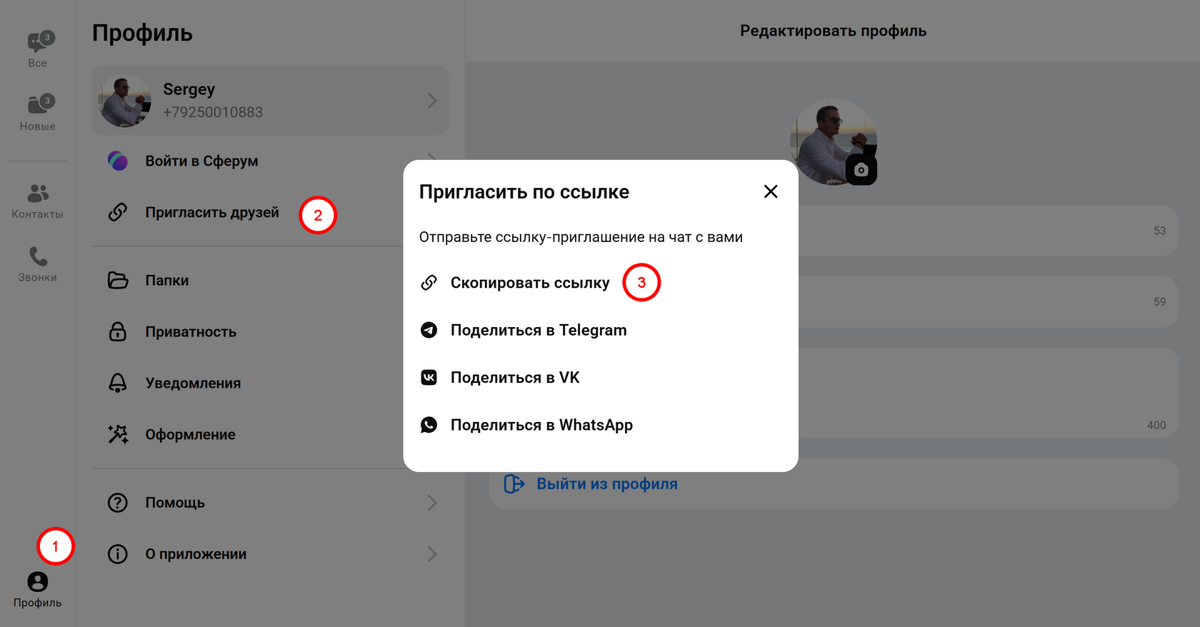 - Профиль → Пригласить друзей → Скопировать ссылку